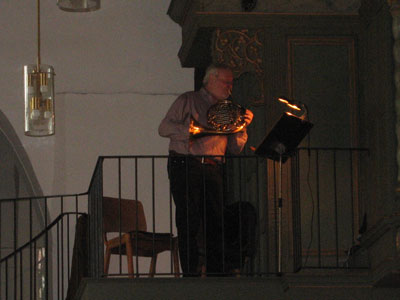 Der Alumne Henning Hansen bei einem Konzert für Horn und Orgel mit der Organistin
